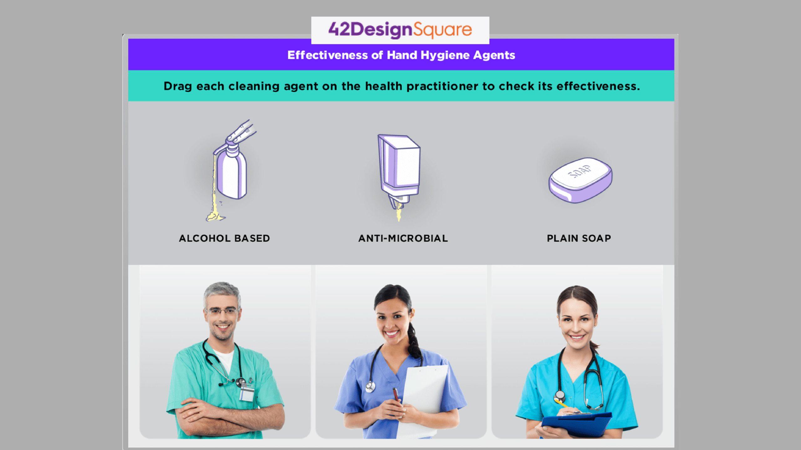 Instructional designers often design elearning in line with the SHOW, NOT TELL dictum. Is the above presentation design really showing the effectiveness of hand hygiene agents?